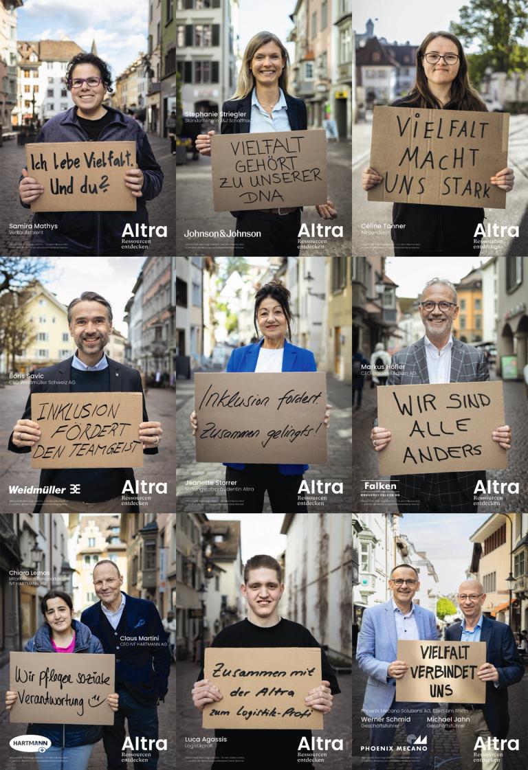 Zweite Welle der Altra-Plakatkampagne – Mitarbeitende im Fokus der neuen Identität.